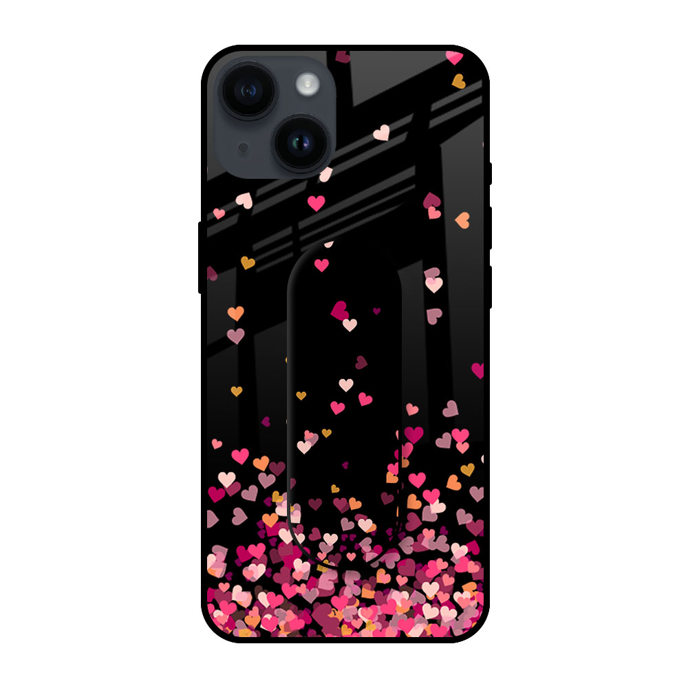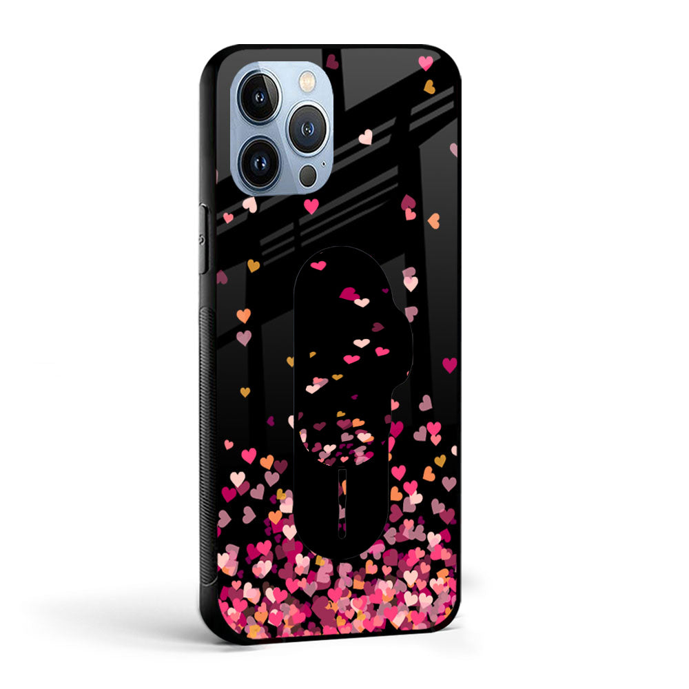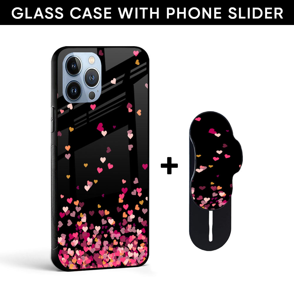 Heart Rain Fall Glass case with Slider Phone Grip Combo
