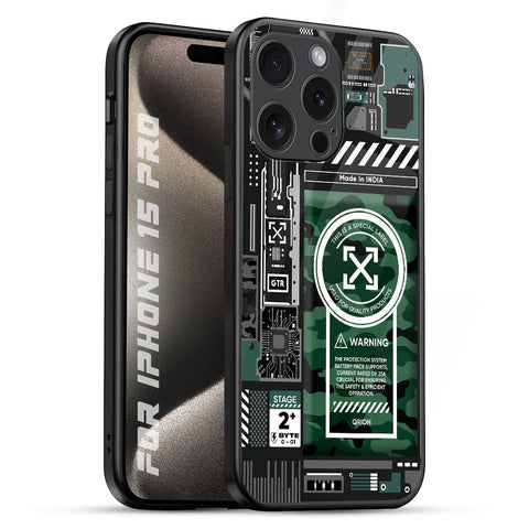 Green Camo Circuit Glass Case for iPhone 15 Pro