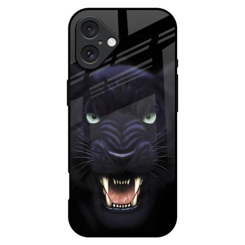 Angry Black Leopard Glass Case for iPhone 16 Plus