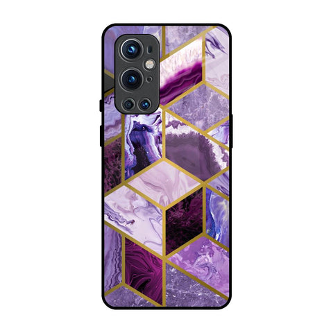 Purple Rhombus Marble Glass Case for OnePlus 9 Pro