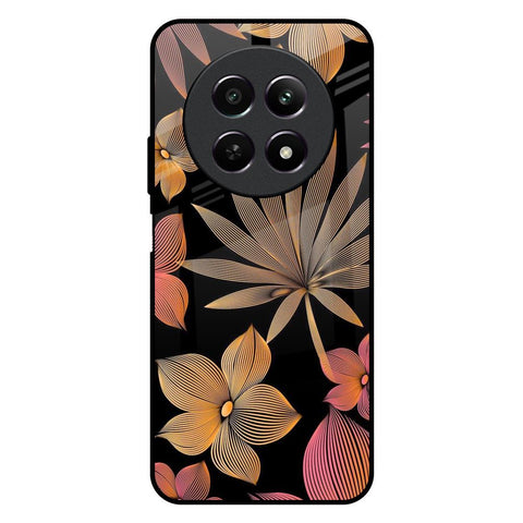 Lines Pattern Flowers Glass Case for Realme 12 5G