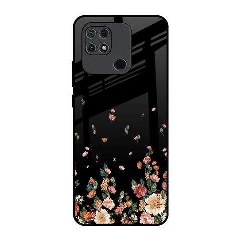 Black Spring Floral Glass Case for Redmi 10