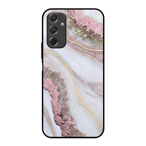 Pink & Gold Gllitter Marble Glass Case for Samsung Galaxy F34 5G