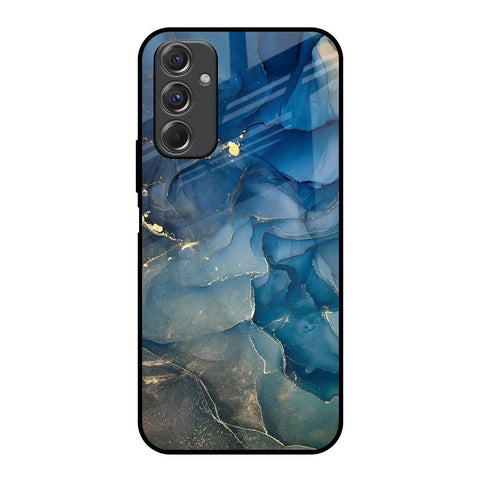 Blue Golden Glitter Glass Case for Samsung Galaxy F34 5G