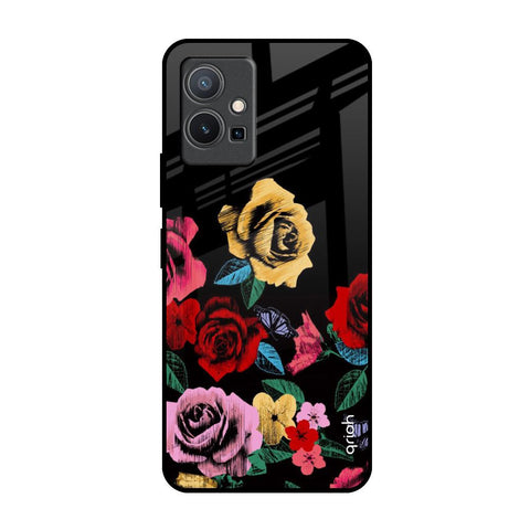 Black Spring Floral Glass Case for Vivo Y75 5G