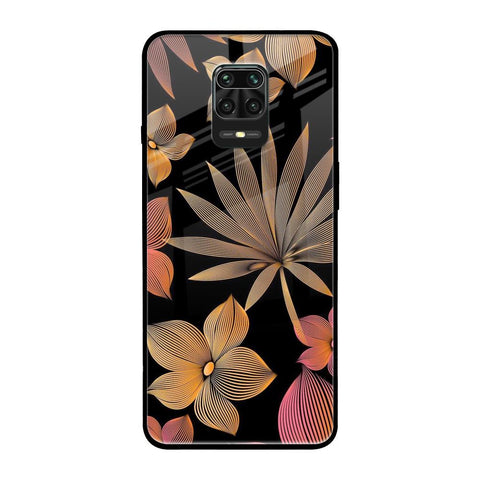 Lines Pattern Flowers Glass Case for Xiaomi Redmi Note 9 Pro