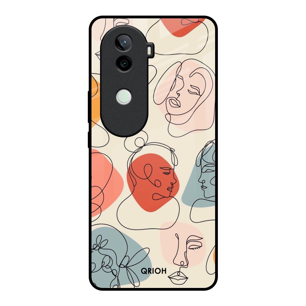 Abstract Faces Glass Case for Vivo V40e 5G