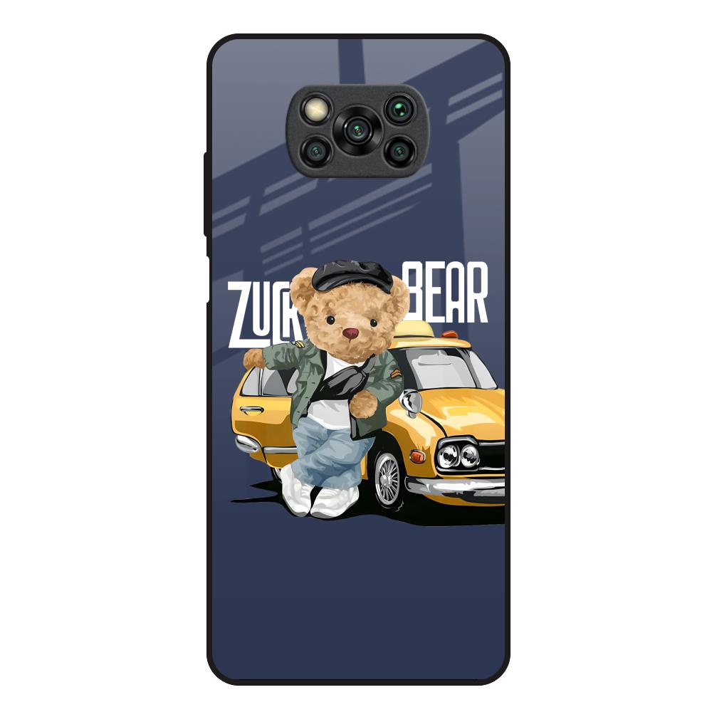 Adventurous Bear Glass Case for Poco X3