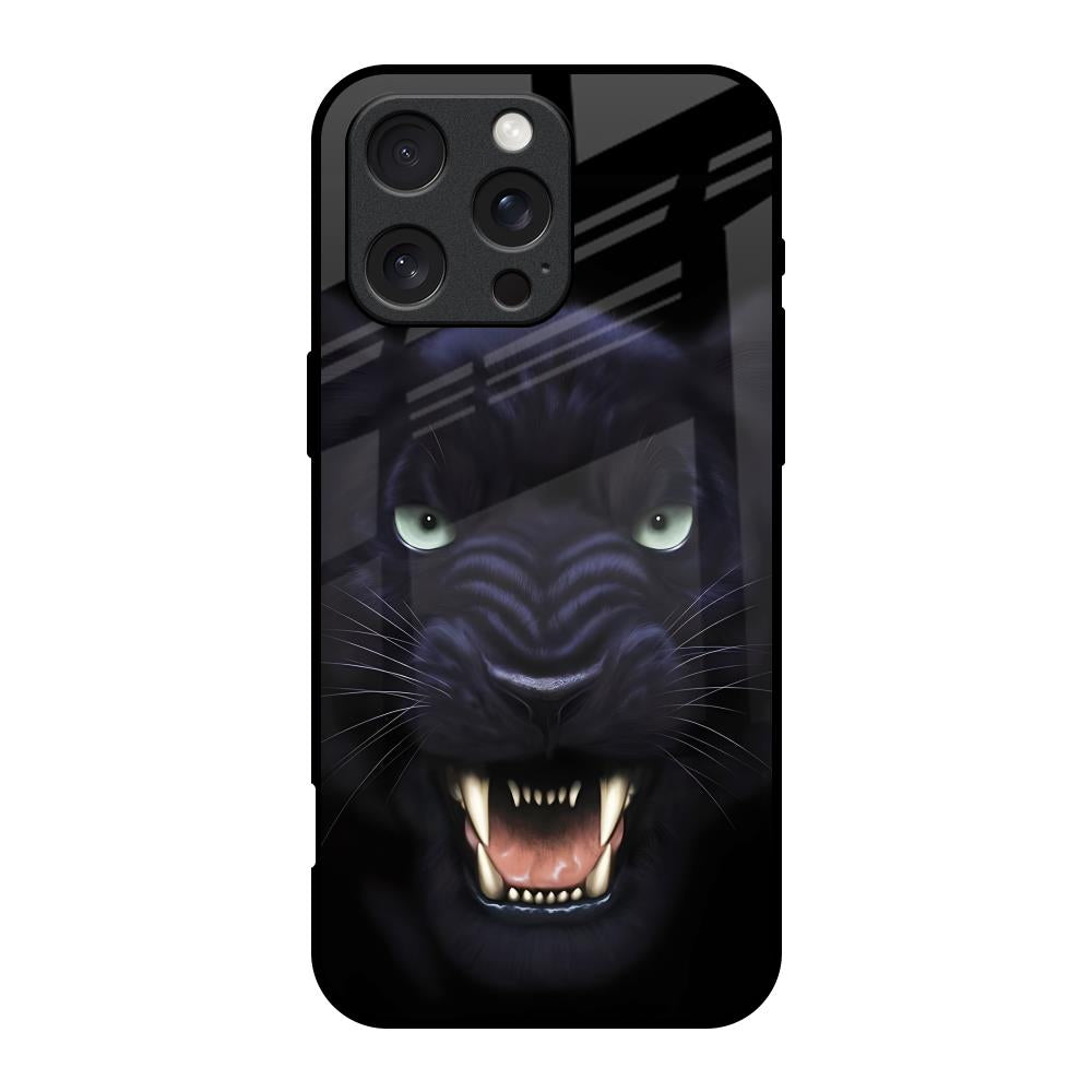 Angry Black Leopard Glass Case for iPhone 16 Pro