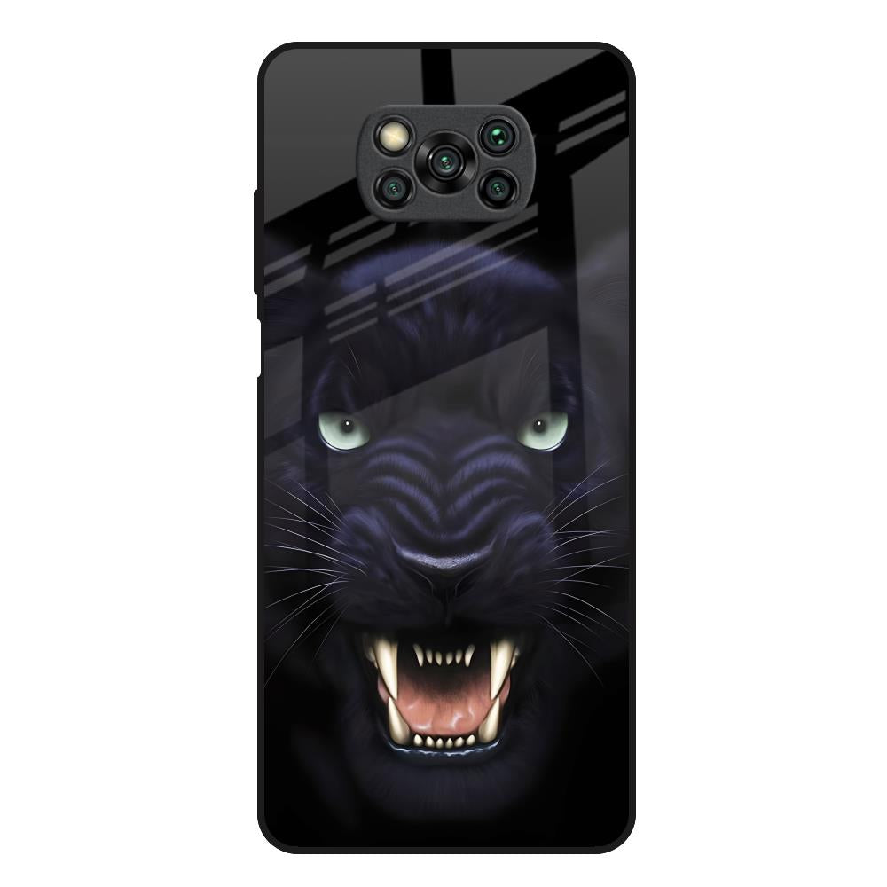 Angry Black Leopard Glass Case for Poco X3
