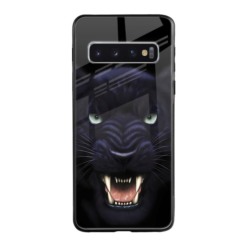 Angry Black Leopard Glass Case for Samsung Galaxy S10 Plus