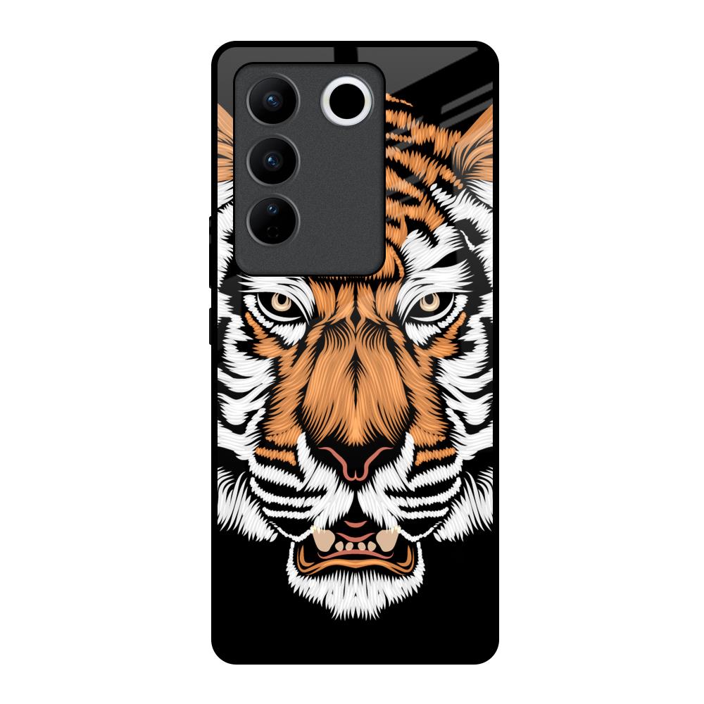Angry Tiger Glass Case For Vivo V27 5G