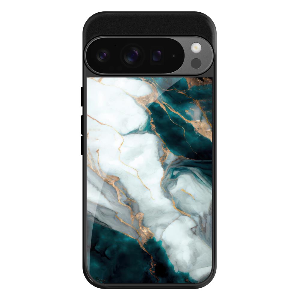 Aqua Green Marble Glass Case for Google Pixel 9 Pro XL