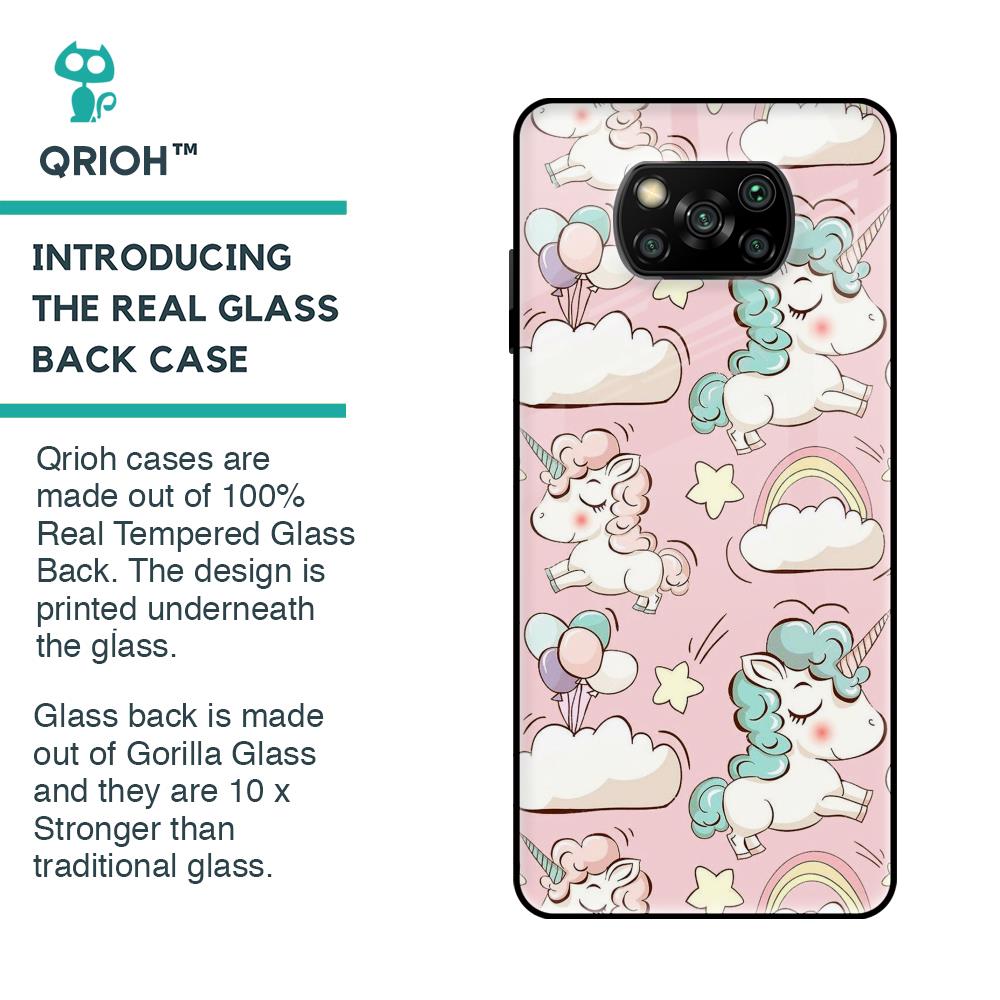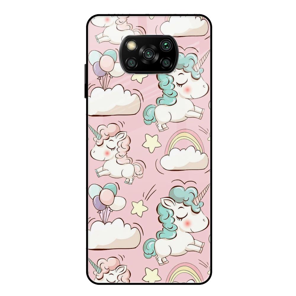 Balloon Unicorn Glass case for Poco X3