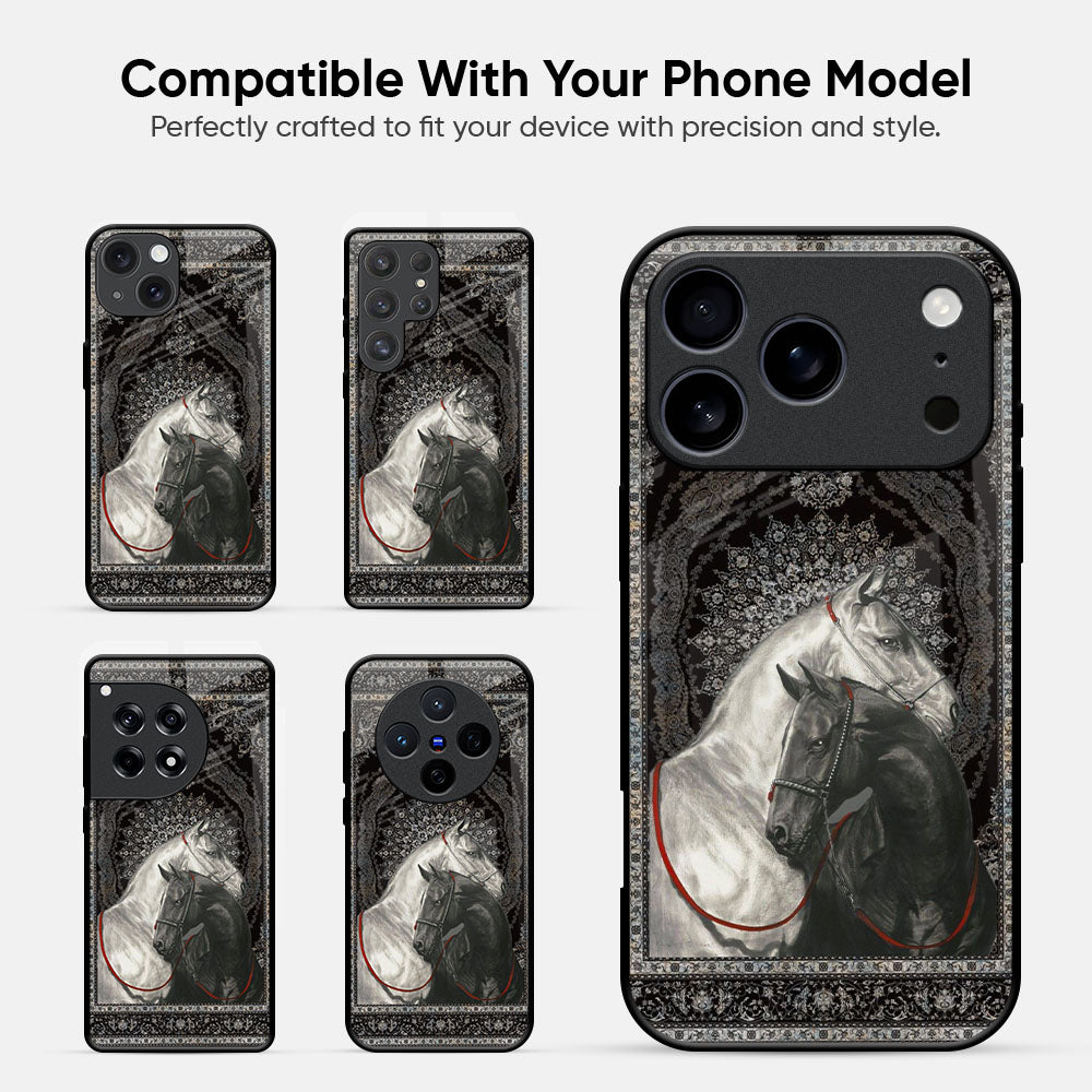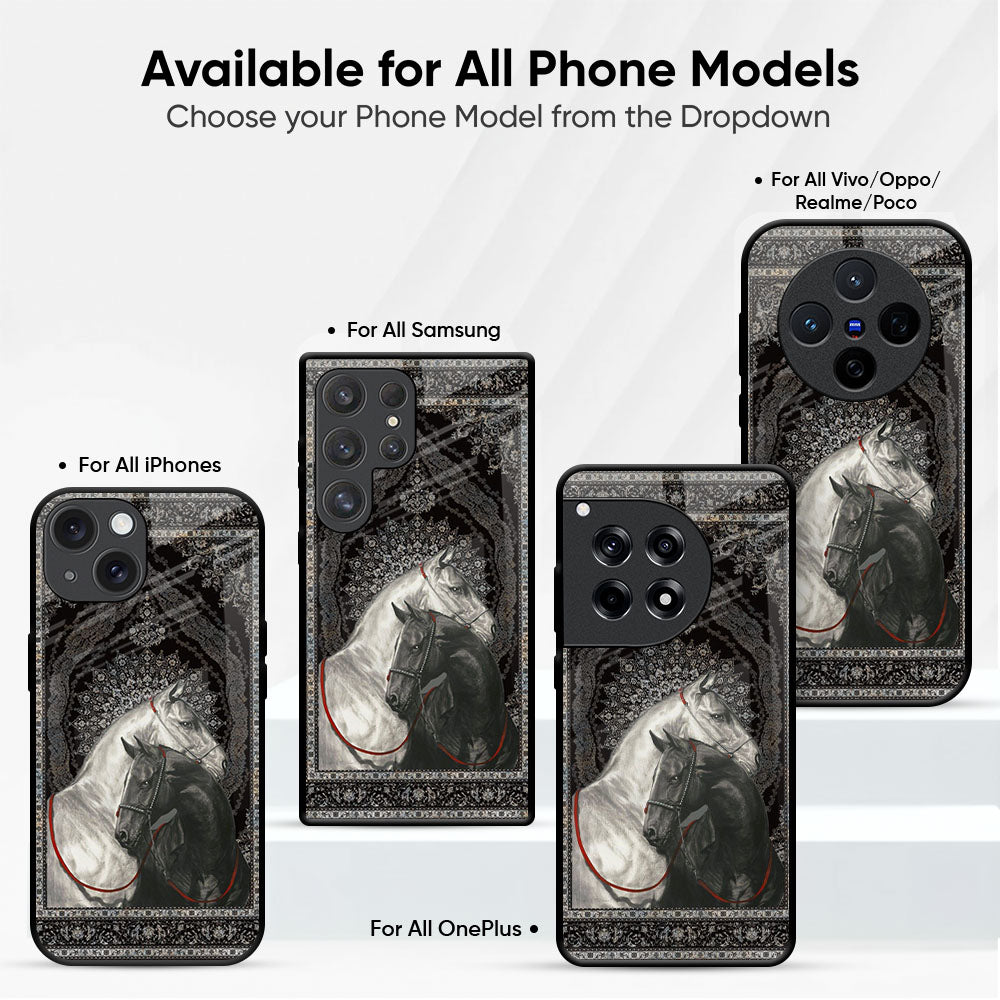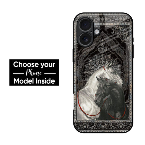 Black And White Horses Glass Case