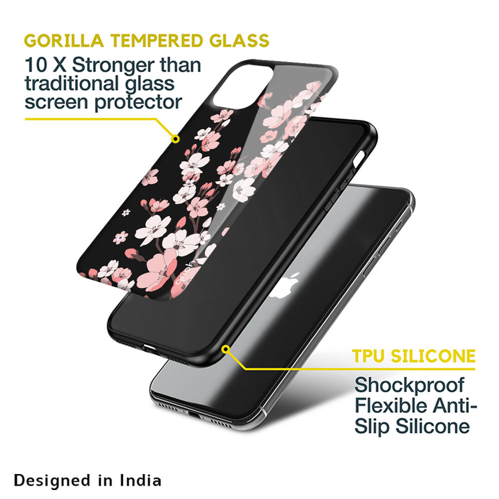 Black Cherry Blossom Glass Case for Apple iPhone 11 Pro