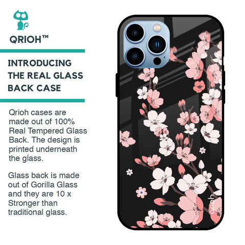 Black Cherry Blossom Glass Case for iPhone 13 Pro Max