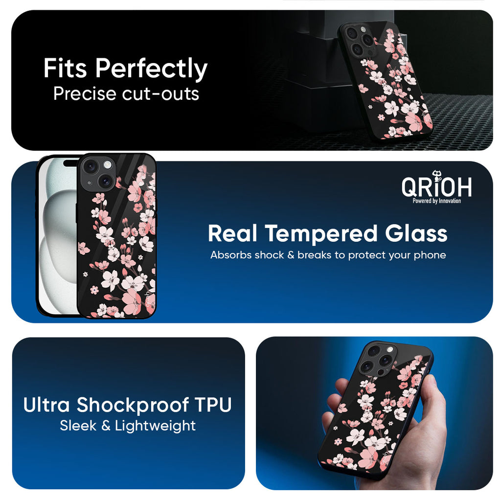 Black Cherry Blossom Glass Case for iPhone 17 Air