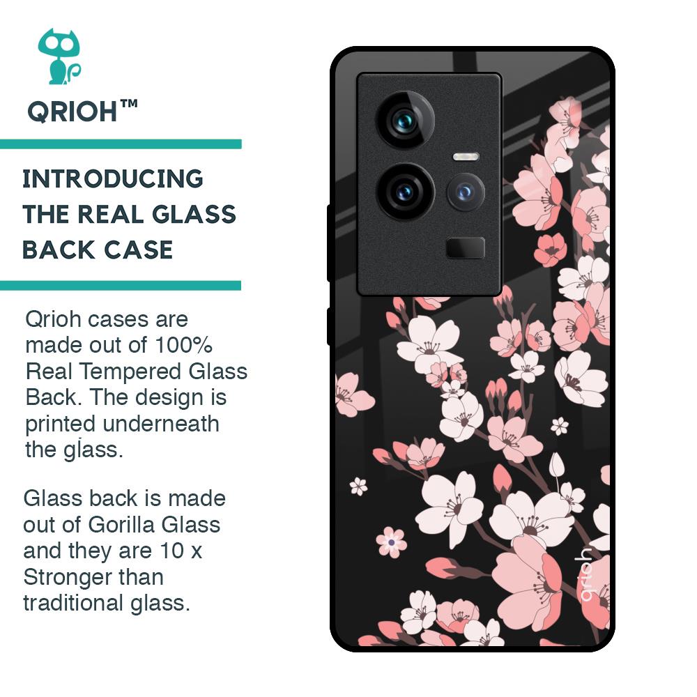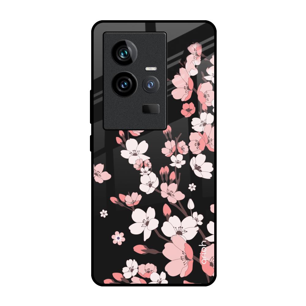 Black Cherry Blossom Glass Case for iQOO 11