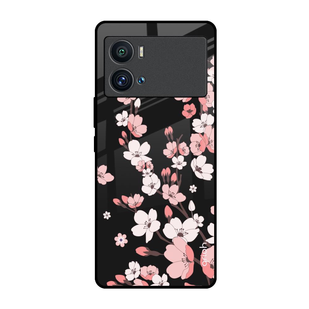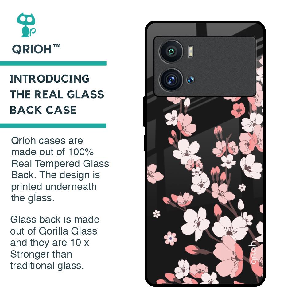 Black Cherry Blossom Glass Case for iQOO 9 Pro