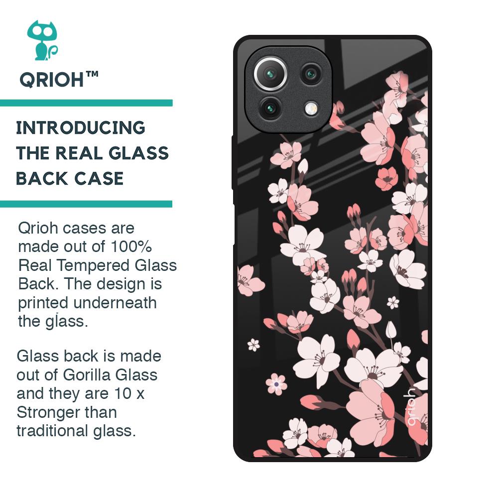 Black Cherry Blossom Glass Case for Mi 11 Lite NE 5G