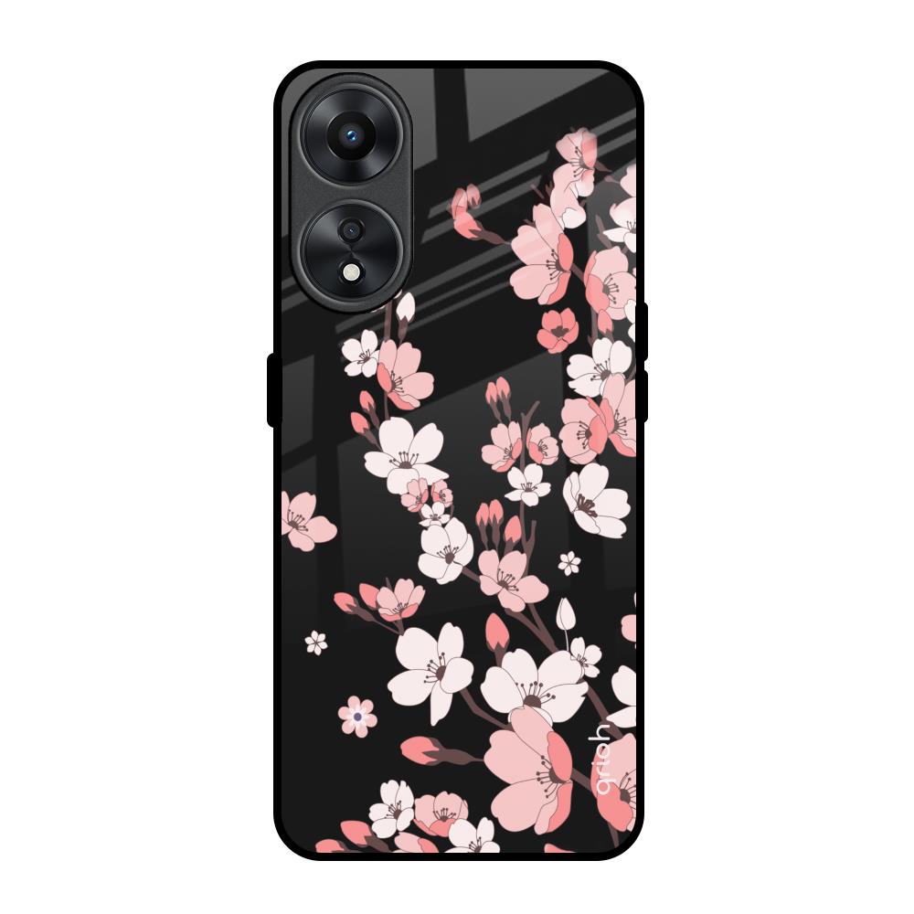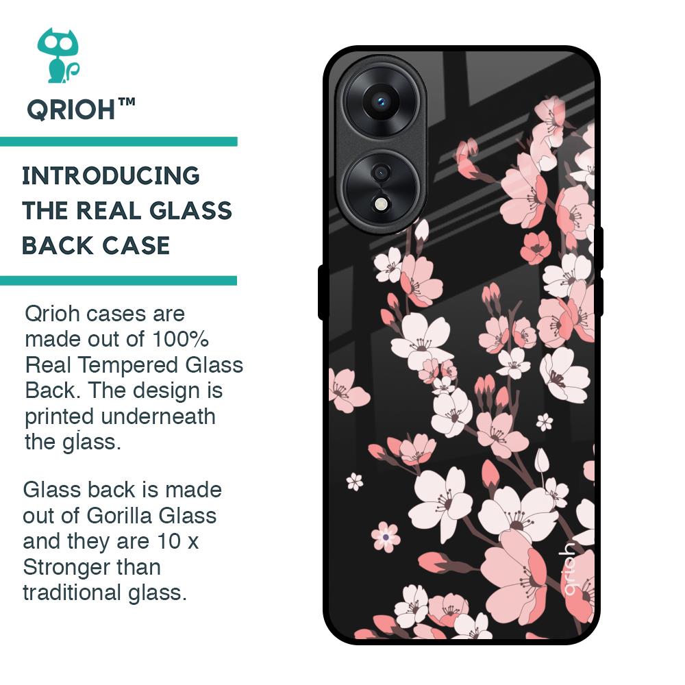 Black Cherry Blossom Glass Case for Oppo A78 5G