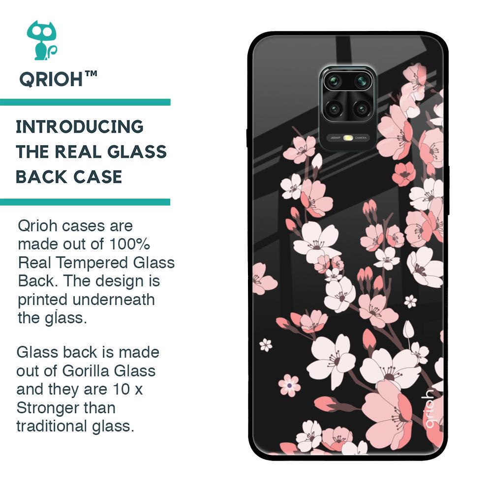 Black Cherry Blossom Glass Case for Poco M2 Pro
