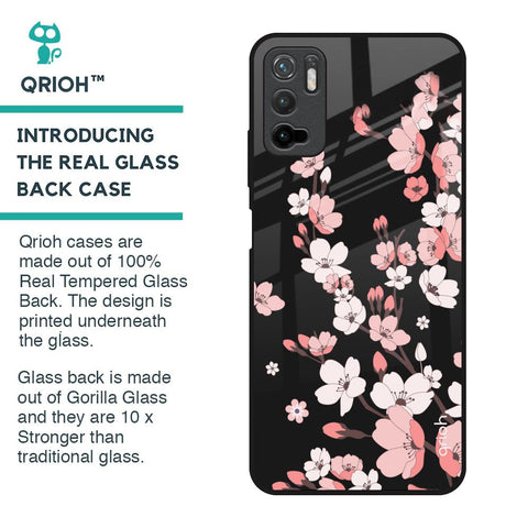 Black Cherry Blossom Glass Case for Poco M3 Pro