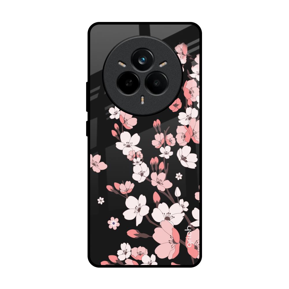 Black Cherry Blossom Glass Case for Realme 14 Pro 5G