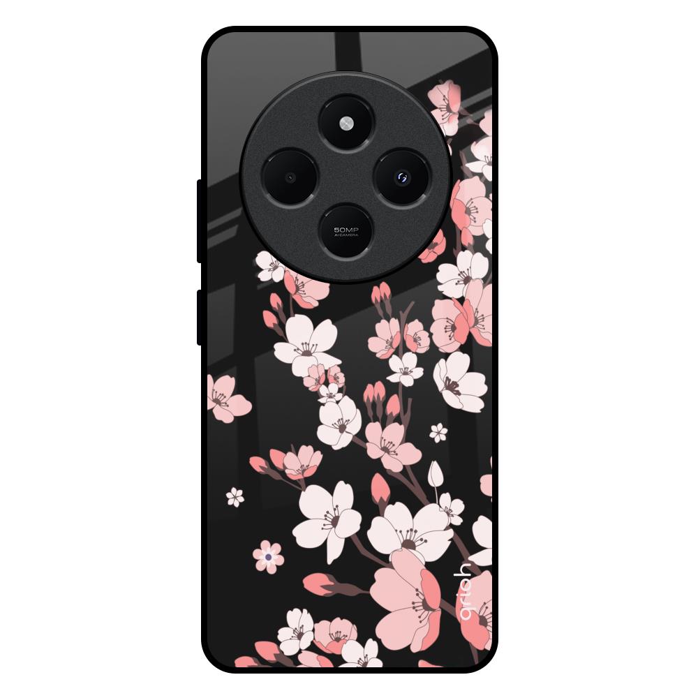 Black Cherry Blossom Glass Case for Redmi 14C 5G