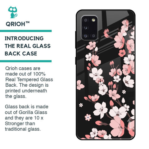 Black Cherry Blossom Glass Case for Samsung Galaxy A31