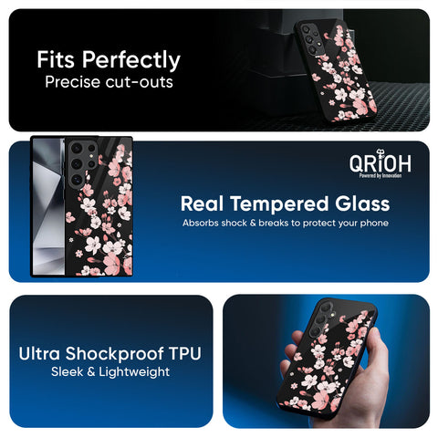Black Cherry Blossom Glass Case for Samsung Galaxy S26 Plus 5G