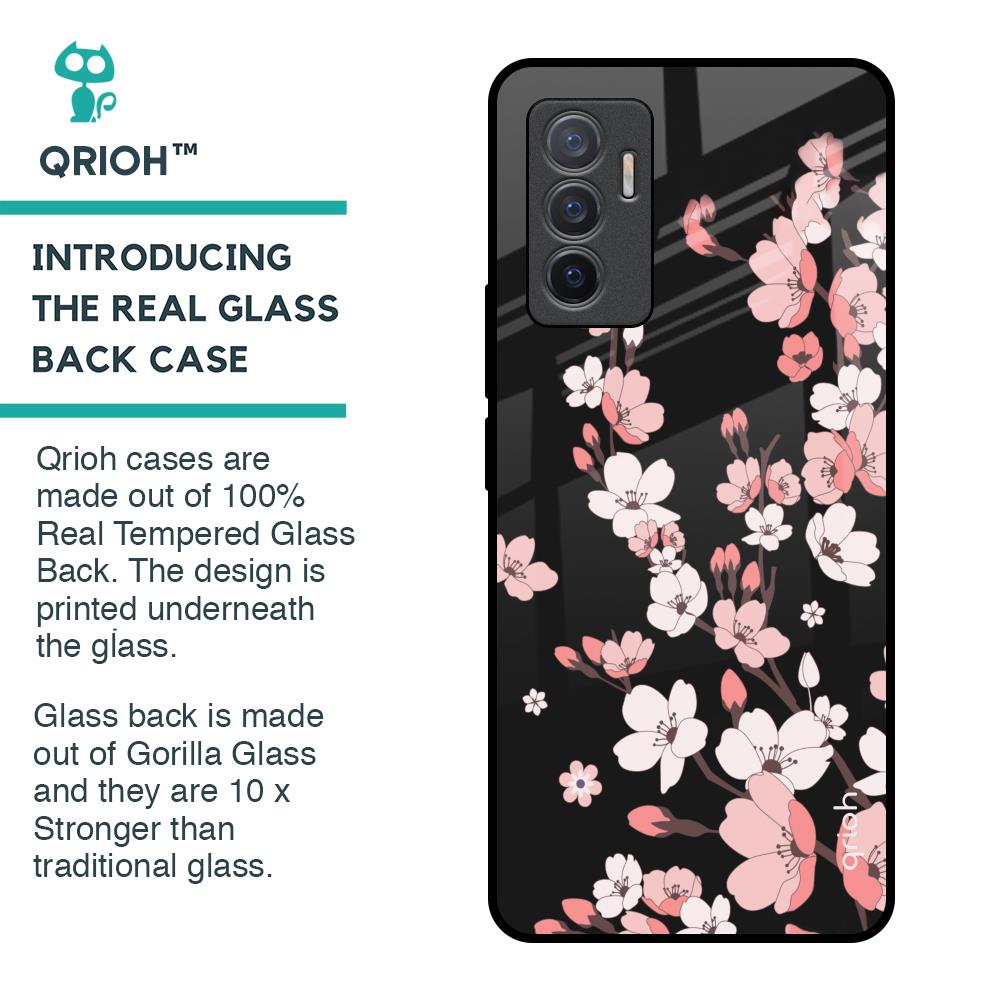 Black Cherry Blossom Glass Case for Vivo V23e 5G