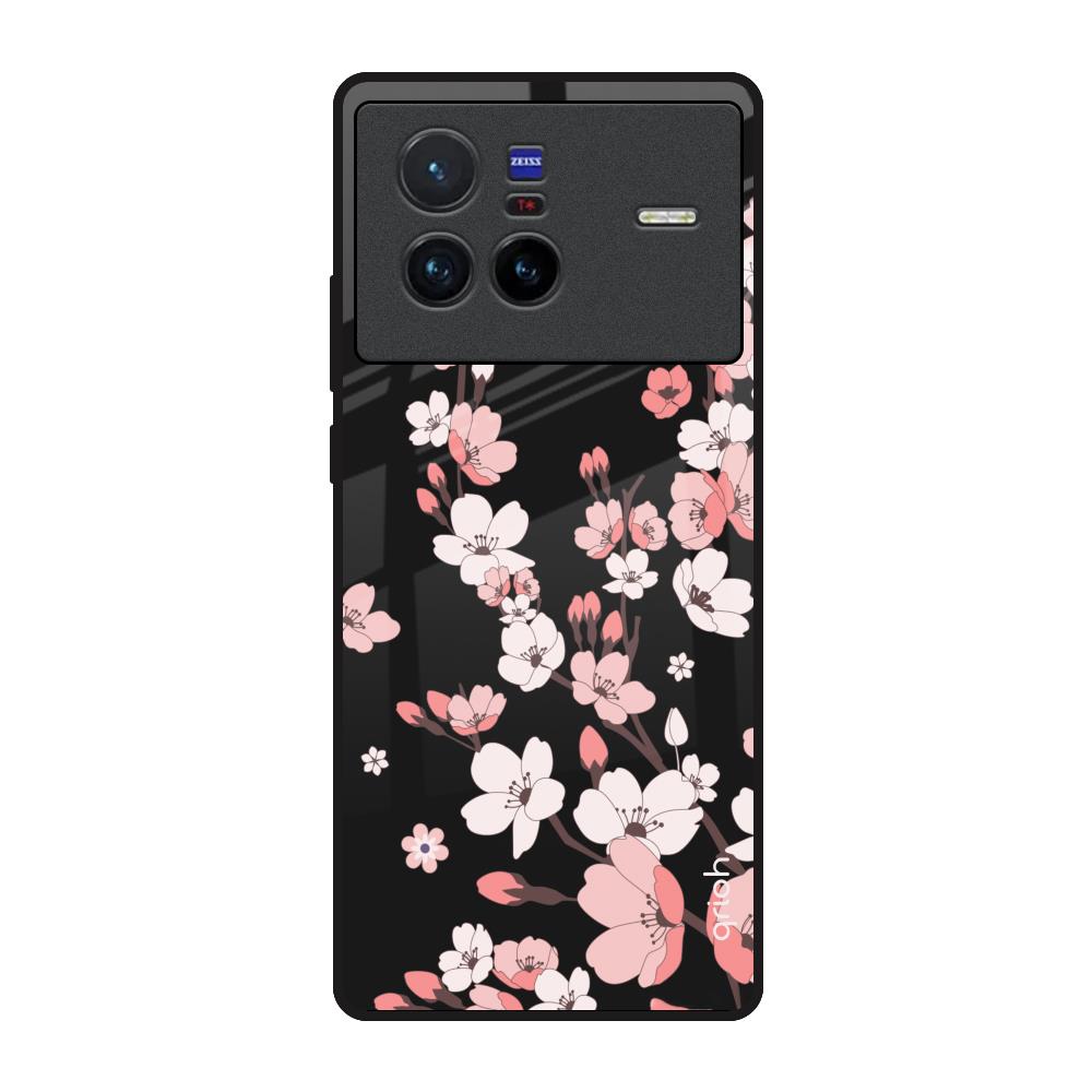 Black Cherry Blossom Glass Case for Vivo X80 5G