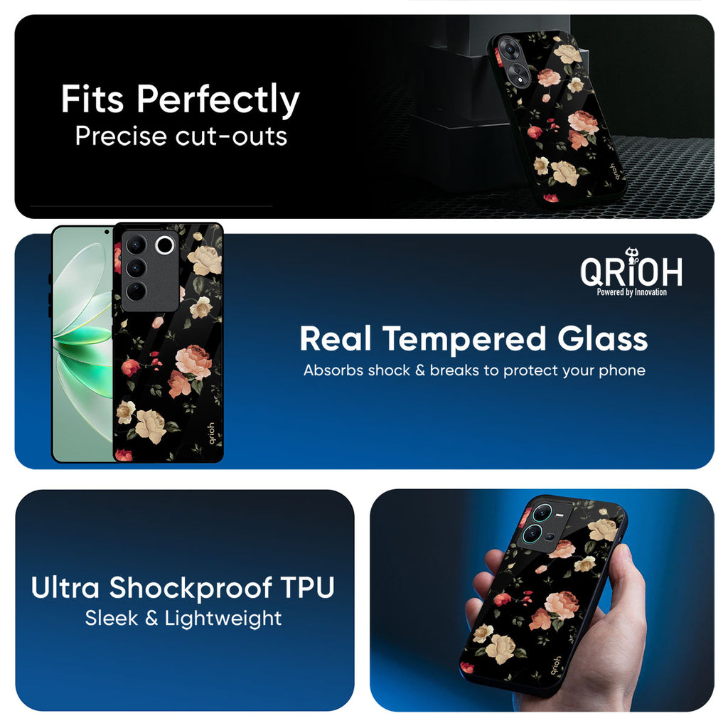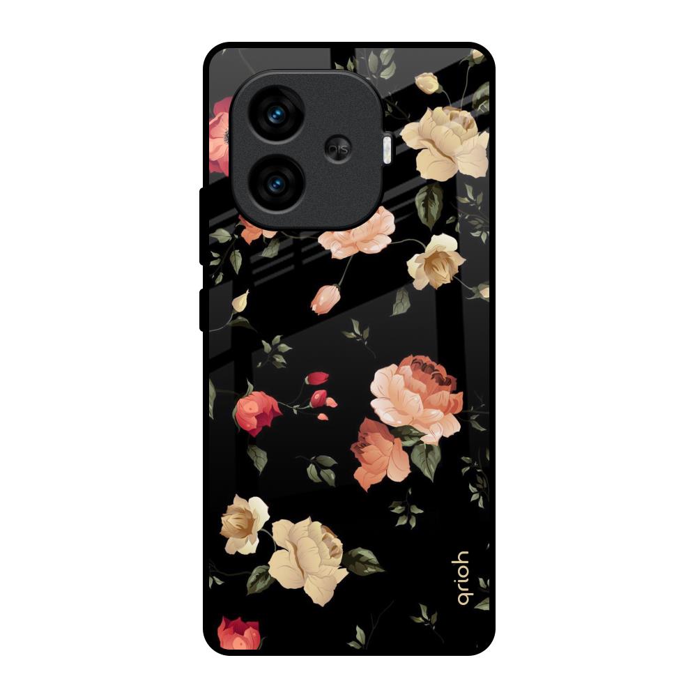 Black Spring Floral Glass Case for iQOO Neo 10R 5G
