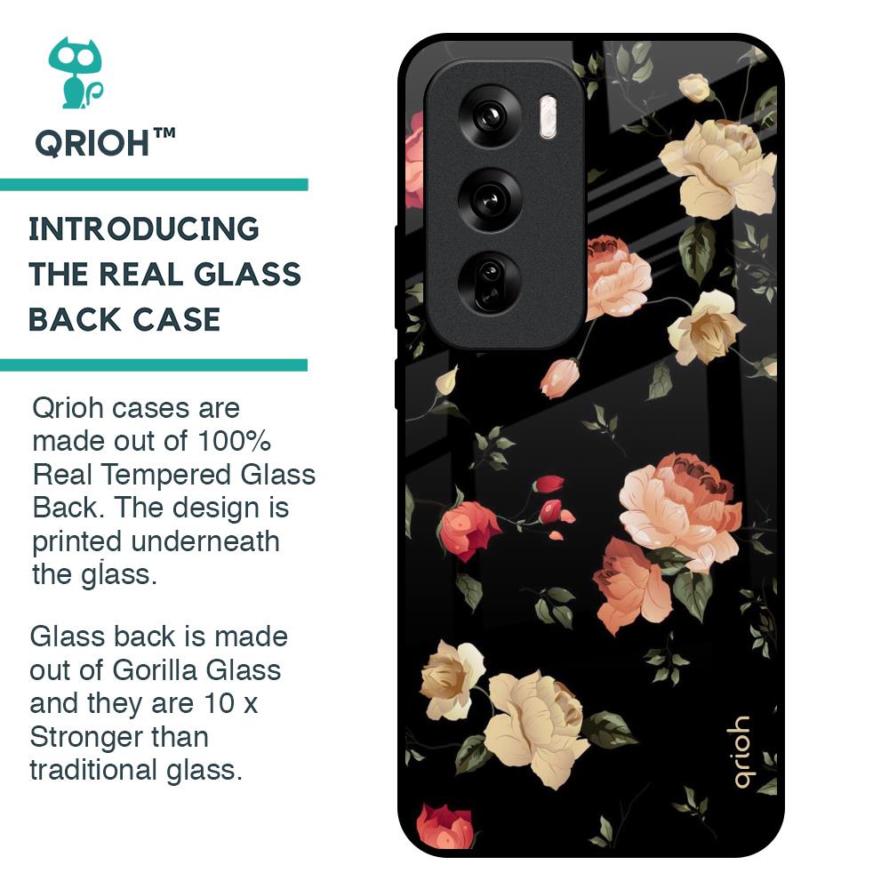 Black Spring Floral Glass Case for Oppo Reno 12 Pro 5G