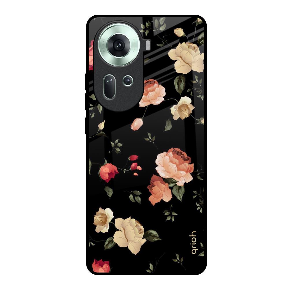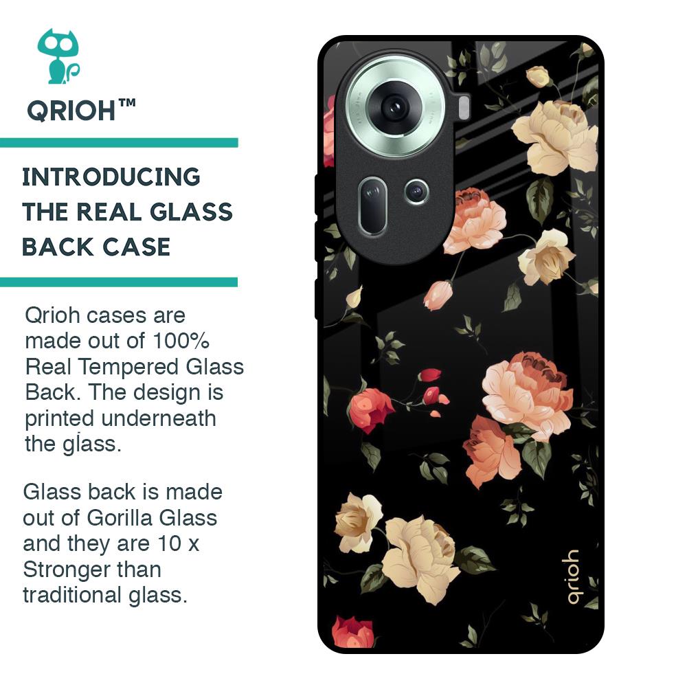 Black Spring Floral Glass Case for Oppo Reno11 5G