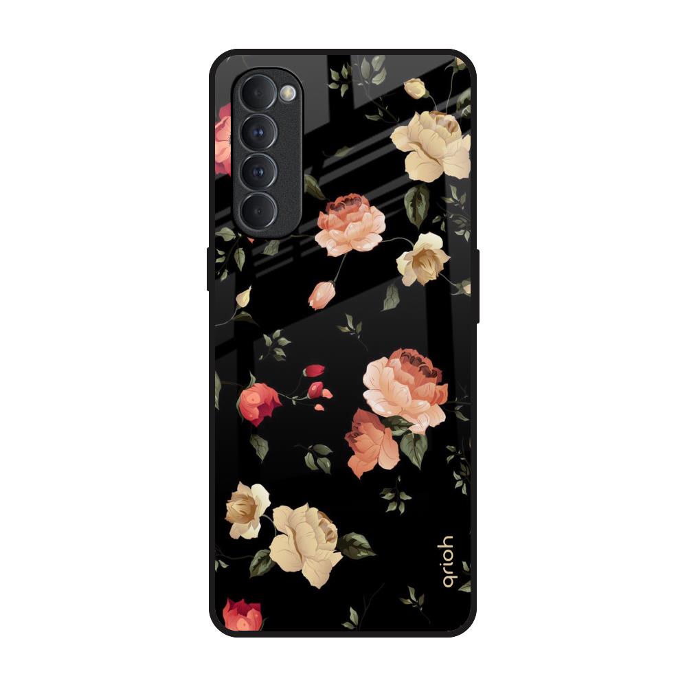 Black Spring Floral Glass Case for Oppo Reno4 Pro