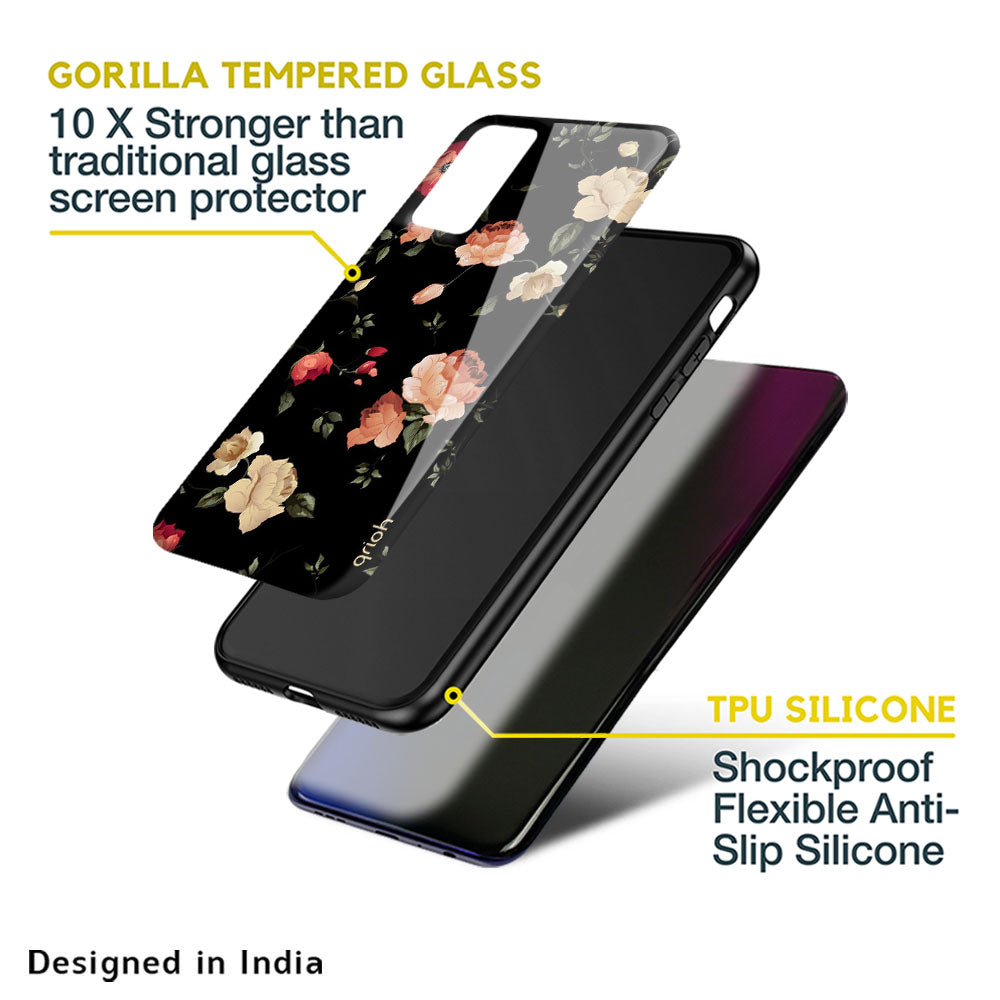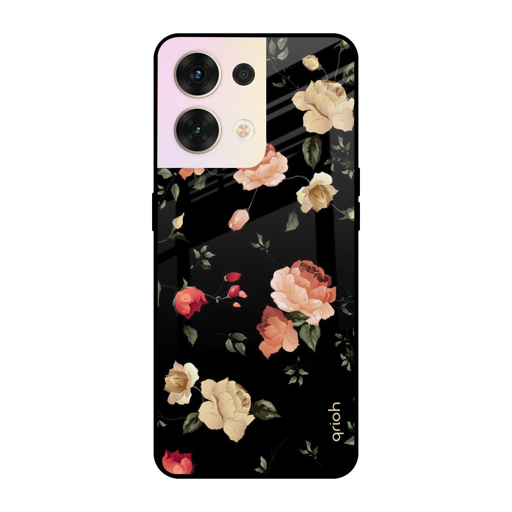 Black Spring Floral Glass Case for Oppo Reno8 5G