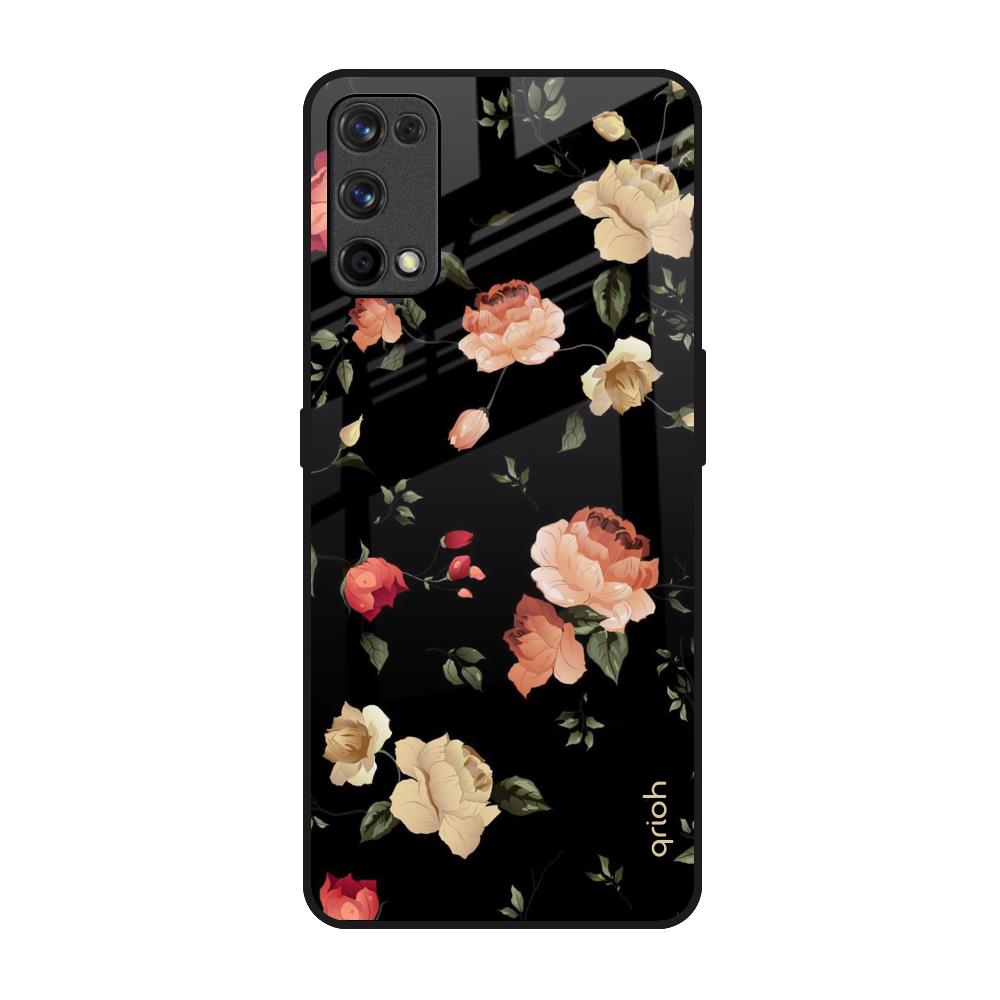 Black Spring Floral Glass Case for Realme 7 Pro