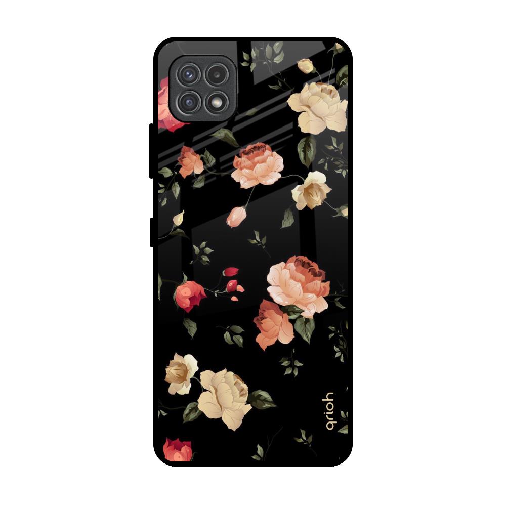 Black Spring Floral Glass Case for Samsung Galaxy F42 5G