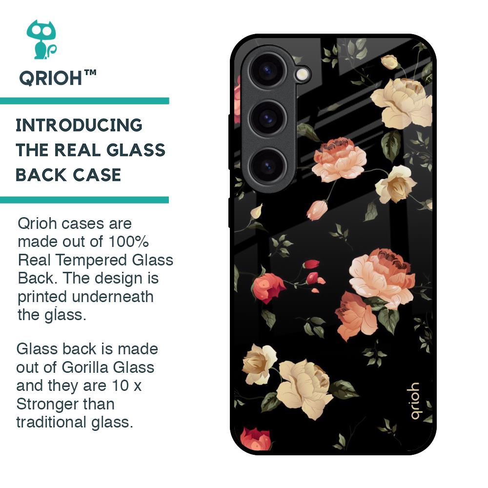 Black Spring Floral Glass Case for Samsung Galaxy S23 5G