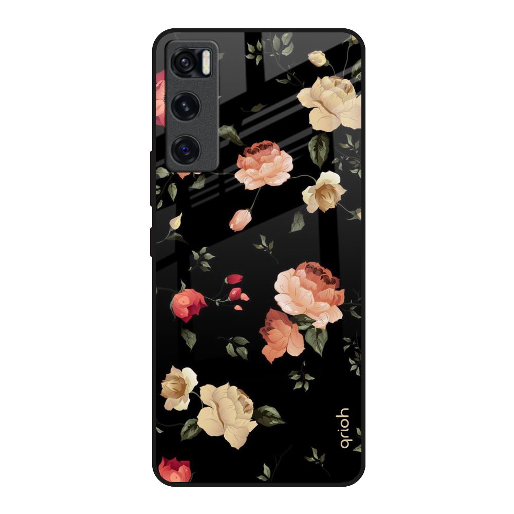 Black Spring Floral Glass Case for Vivo V20 SE