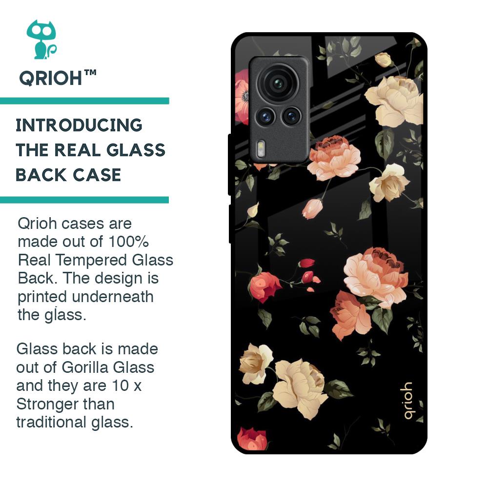 Black Spring Floral Glass Case for Vivo X60 PRO