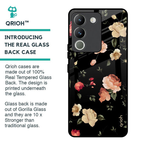 Black Spring Floral Glass Case for Vivo Y200 5G