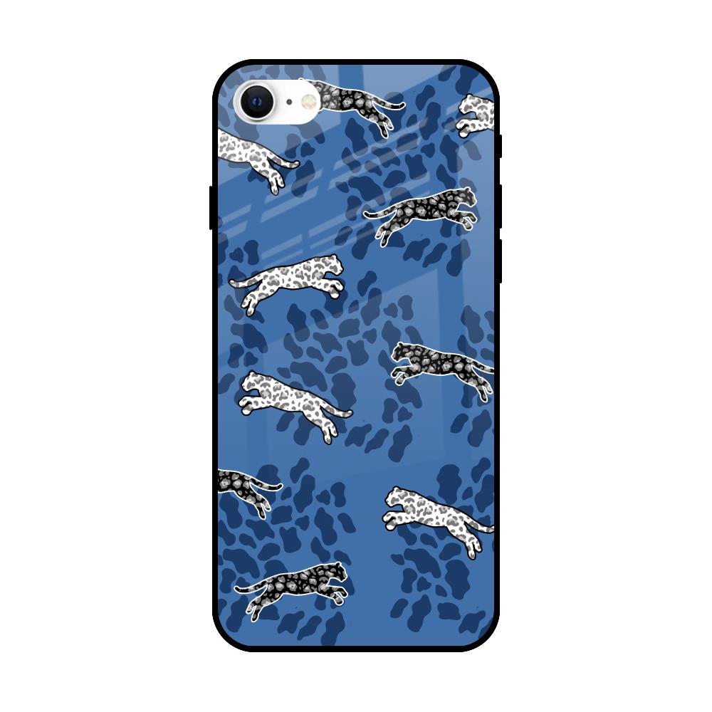 Blue Cheetah Glass Case for iPhone SE 2022