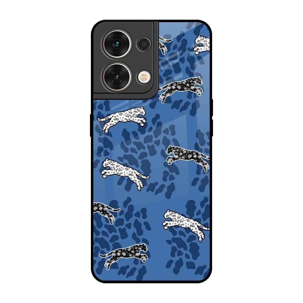 Blue Cheetah Glass Case for Oppo Reno8 5G