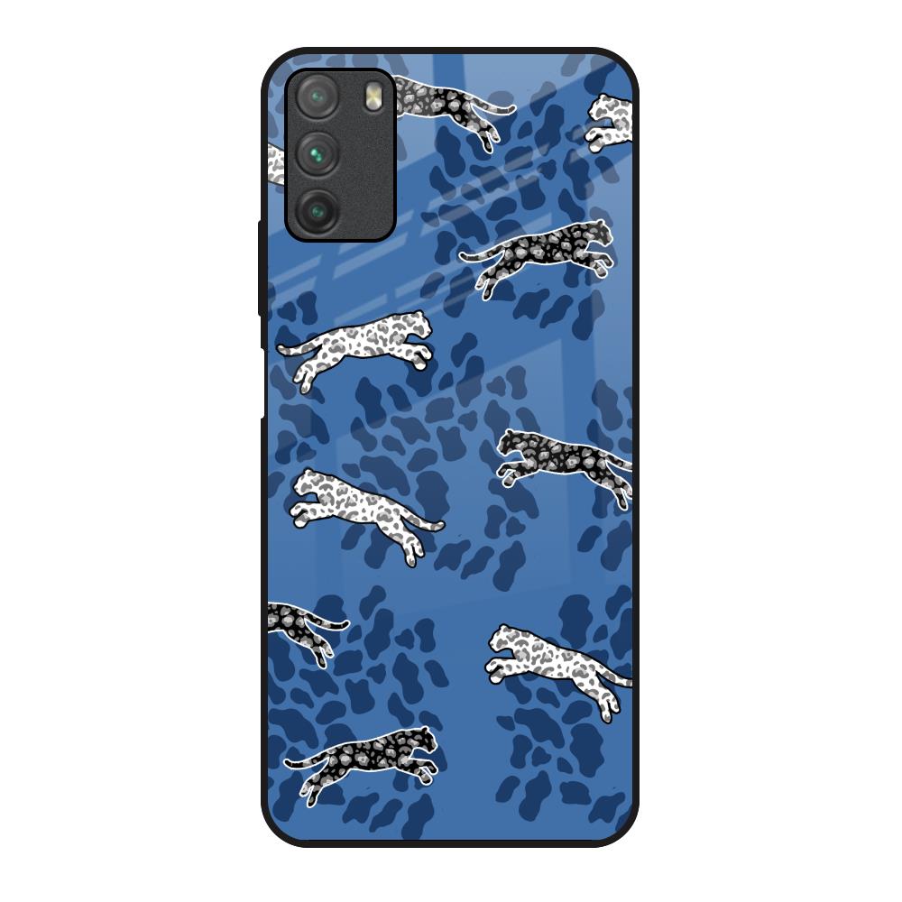 Blue Cheetah Glass Case for Poco M3