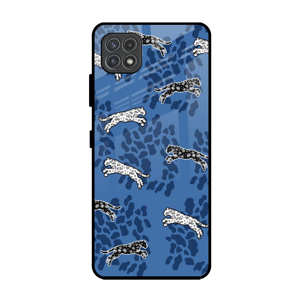 Blue Cheetah Glass Case for Samsung Galaxy F42 5G