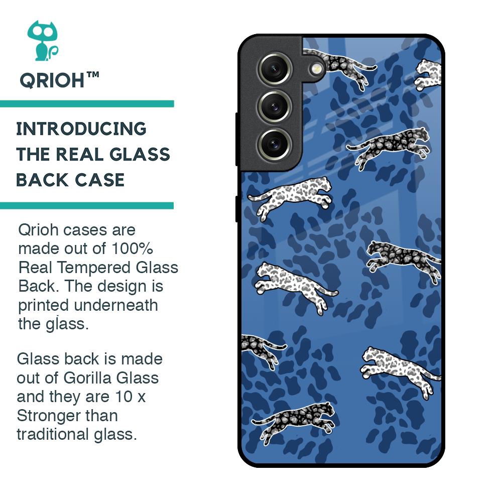 Blue Cheetah Glass Case for Samsung Galaxy S21 FE 5G
